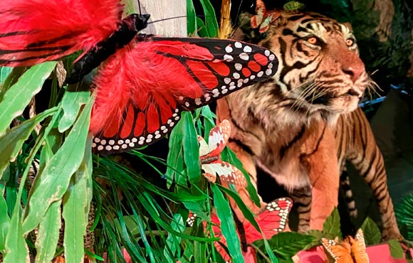 På Butterfly Café har Aalborg Zoo skabt en helt ny og eventyrlig oplevelse for gæsterne, der her kan nyde et eksotisk måltid i tropiske omgivelser. I den hulelignende café blander lyden af et brusende vandfald sig med kvækkende frøer og en brølende jaguar. Smukke sommerfugle flakser rundt, og pludselig flænges himlen af et lyn, og en buldrende torden får dyrelydene til at forstumme for et øjeblik.