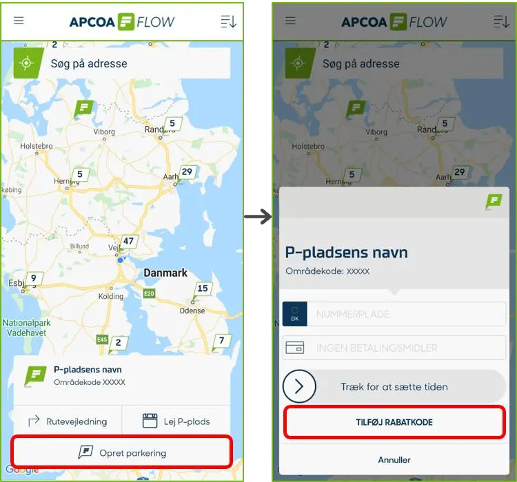 - Hent APCOA FLOW appen, hvor du plejer at hente dine apps